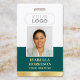 Create a professional appearance with this personalized identification badge. A simple and stylish template with your ID photo, name, job title, company logo, and scannable QR code. All the text can be customized or deleted to suit your business needs. This elegant design would suit many different workplaces and professions, including corporate professionals, retail salespersons, beauty consultants, hotel staff, small businesses, conference name tags and more! Printed colors: teal green and white with a faux gold gradient.