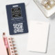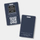 A modern minimalist personalized business badge with business logo and QR code. Personalize with your logo, QR code and details to create your own unique elegant blue and white business badge. Customize even further with a custom color background or font.