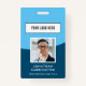 Minimal and modern style professional company/business employee photo ID badge with a blue colour theme. Customize with your company's logo and employee's photo, change the background color or leave as shown here. Add your URL for the QR Code on the back or remove if not needed. There is a text box to add further information on the back. Please browse other employee/business badge designs in the Employee ID Custom Photo Logo Badge Collection.