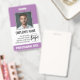 White and Purple Accents - A basic business design that highlights your office logos and employee name. This traditional office design also includes a badge ID number, expiration date and nurse or or other title.