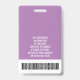 BACK: You can add a scan bar code on the back and a place to add information if the badge is lost.