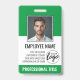 White and Green Accents - A basic business design that highlights your office logos and employee name. This traditional office design also includes a badge ID number, expiration date and nurse or or other title.
