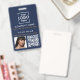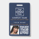 A modern minimalist personalized business badge with business logo, QR Code and photo. Personalize with your logo, QR Code, photo and details to create your own unique elegant blue and white business badge. Customize even further with a custom color background or font.
