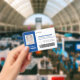 Landscape dark navy blue essential workers ID badge personalize with your employee's photo, name, job role, company logo, company name employee number and a barcode for entry into restricted areas. Lost or other important information on the reverse.