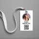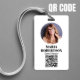 This design features a corporate employee classic standard, retail small business hospital clinic, security photo name and title, business personnel staff employee, simple basic standard, standard office basic minimal, building access event staff, staff name picture photo id, custom security id badge, modern black and white clean with scannable QR Code
