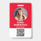 This design features a corporate employee classic standard, retail small business hospital clinic, security photo name and title, business personnel staff employee, simple basic standard, standard office basic minimal, building access event staff, staff name picture photo id, custom security id badge, modern black and white clean with scannable QR Code