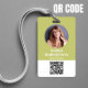 This design features an employee photo badge, perfect for any company, great for corporate security, with name and title, a simple business minimalist name badge with a QR code scan, a minimalist business employee photo perfect staff keychain, in gold and white
