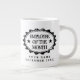 Employee of month extra large coffee mug gift for co worker. Huge award cup for men and women in the office. Fun appreciation gift idea for him or her. Create one for corporate employee, boss, coworker, personnel, staff, friends, manager, office worker, shop worker, store clerk, teacher, coach, graduate student, colleague, partner, client and others. XL size mug with vintage crest and typography. Add your own personalized name and year date. Double sided print.