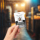 Employee Photo ID Barcode Logo Black & White Curve Badge