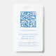 Maintain a clean, modern look for your team with these customizable vertical employee ID badges with qr code, featuring a minimalist muted gray background with a soft blue strip and blue sans serif text. Each badge can be personalized with an employee photo, name, and two additional lines of custom text—ideal for including an ID number, job title, department, or office location. Add your company logo at the top to create a unified, professional brand identity. The reverse side includes an optional custom text field, perfect for return instructions, emergency contact information, or any other important details. Designed for simplicity and functionality, these badges are ideal for businesses, schools, healthcare settings, events, and more—anywhere a polished and secure ID solution is needed.