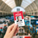 Personalize these vertical press pass badges with an employee photo and name, along with three lines of additional custom text for title or role, media outlet, and valid through date. PRESS appears at the top in bold white lettering. Additional custom text field located on the back for return information or other details, as well as a template for a barcode or a QR code.