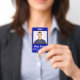 Customize your employee's Photo ID badges. All details can be modified or removed. Photo, name, company, department/division. Crisp white text on royal blue background. Every detail can be customized, including colors and fonts. Spot for barcode on reverse of badge, if needed. If not, can be deleted. MATCHING BUSINESS CARDS also available in this store.