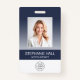 Give your brand a sleek, modern look with this custom badge design. It features a sophisticated vertical layout with a beautiful gradient that fades from a deep, rich blue into a crisp white, creating a stylish backdrop. This elegant design expertly frames an employee's photo and key information, ensuring your team presents a professional and unified appearance.