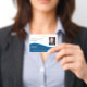 This design offers a placeholder for your logo, ID number, photo, and bar code.
