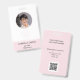 Elevate your company's professional image with a sleek Employee QR Code Blush Pink ID Badge in a simple blush pink and gray design. Customize it with employee photo, company logo, QR code, business details, and job titles for a polished look.