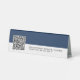 Easily personalize this Employee Table Tent with business Logo, Name, Photo, Qr Code. Add name, photo, profession, job title and business logo. A simple business design in navy blue and white colors fully customizable, sans-serif basic and modern fonts and a professional and clear look. Available in plastic or paper, in small, medium and large size. Background color and fonts are totally customizable. No minimum order.