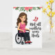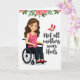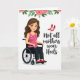 Designed with a modern, inclusive look, this card features an animated woman with a warm smile and flowing brown hair, seated comfortably in a mobility aid as she turns slightly toward the message like she’s sharing a knowing moment with you 👩❤️. She wears a pink top with small polka dots, dark trousers, and bright red flat shoes that feel chosen with confidence and ease. On the right side, the main text reads “Not all mothers wear Heels.” in dark lettering, arranged in stacked lines with generous spacing against the white background. Above the words, a pair of red high-heeled shoes floats like a contrasting symbol, drawing the eye and adding a gentle, cheeky comparison without needing extra explanation. A garland of soft pink roses and green leaves stretches across the top edge, giving the scene a celebratory, affectionate touch 🌼. The layout keeps the figure on the left and the message on the right, creating a balanced, open composition that feels friendly and direct. The overall palette stays light and airy, with reds and pinks standing out crisply against the white space. The top border is framed by clustered pink roses and leafy greenery, with the red heels hovering above the right-side text.