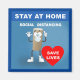 Magnet with a typography message. Empty Toilet Paper Roll with Safety First Message. Stay at home.
