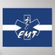 EMT posters for EMS workers features caduceus the medical symbol and "EMT" in our personalized emergency services active designs. Great gift ideas for medics, firefighters and EMT's from Bonfire Designs.
