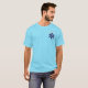D. On the front of the shirt is "EMT" above a blue star of life and on the back is the same EMS rescue symbol in a larger size.