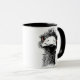 A delightful pen and ink rendering of an emu head on with only the eyes colored in bright golds. The face of this emu will bring a smile to anyone.