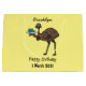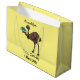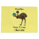 This funny emu has green eggs! Drawn in happy cartoon style.