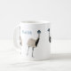 Surprise your favorite bird lover with a personalized emu coffee mug. This mug features realistic style illustrations of emus and is ready to be personalized with a name in blue lettering. The graphics wrap around the cup and the name appears on both the back and front.
