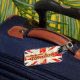 en route pour l'aventure french graphic text tag meaning way to adventure. This version has the british flag behind, perfect for those who are going to europe or are of British decent. Customize the reverse of this tag with your name and address details. Designed exclusively by Sarah Trett.