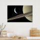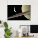 Digital artwork depicting Saturn and one of it's moons, Enceladus