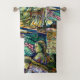 I ordered these towels because I am getting ready to stage my house for sale and wanted some really pretty towels to show off the bathroom. These are an absolutely perfect match for the teal walls and I could not be more pleased. Not only do they look beautiful, they also seem to be very good quality. They are different than any other towels I've had, as the surface fibers are not looped. I love that because I have never liked how most towels have loops that snag and pull no matter how careful you are. I pre-washed them and they came out beautifully. The towels are generously sized and they don't feel flimsy at all. I did not read the description well enough to understand I was paying as much as I was paying for just exactly what was pictured: not a set of two, but a single towel, hand towel and washcloth, so they are way more expensive than I thought (which was a lot, considering). However, I still love them enough that I went ahead and ordered a single additional bath towel so that I would have an actual set, but will need to buy a couple of solid color washcloths. Pricing is weird, because a single wash cloth is priced higher than a large bath towel?? Anyway, if you can afford them, these towels are fantastic. I would never pay this much except to show off a house for sale, but now that I've done it I will love them in my new home as well. Gorgeous! Vibrant Colors and exactly as pictured,..maybe evern better!