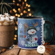 Featuring our beloved antlered snowman, charmingly holding his broom and adorned with a festive hat and scarf, he's surrounded by sparkling snowflakes on a serene blue and black background. The inviting text "HOT COCOA" hints at the warm goodness within, while your chosen name (e.g., 'Michael') makes this mug a truly special and personal keepsake.