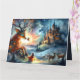 Step into a quiet winter fairytale with this enchanting deer and castle illustration. A majestic fdeer, softly illuminated by warm golden light, rests beneath a glowing tree as a tiny hummingbird hovers nearby. In the distance, a storybook castle rises from snowy hills, its windows glowing against a deep blue evening sky. Gentle deer stand watch in the foreground, while a small cloaked figure carrying a lantern adds a sense of wonder and narrative charm.