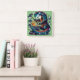 Enchanted Cat Blacksmith Forging Weapons at Dusk Square Wall Clock