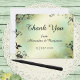 Wedding flat card Thank You in a romantic watercolor mist of blues, greens and cream with a black leafy swirly border. Personalize with your names and date. Matches the Enchanted Evening Glow wedding Invitation and other items in this same design at MonogramsandMonikers on Zazzle.