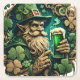 An illustrated leprechaun clad in traditional garb raises a frothy mug of ale amidst a backdrop of lush greenery and clover. With twinkling eyes and a wily grin, he stands as the embodiment of festive folklore, inviting onlookers to a magical celebration of good cheer. The rich, emerald tones and ornate details evoke the spirit of a timeless Irish tradition.