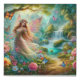 Beautiful Fairy in an Enchanted Forest with Waterfall, Butterflies and Flowers Faux Canvas Print