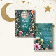 BOOKS FOR BABY ENCLOSURE CARDS | Encourage your guests to fill your baby girl's life with delightful adventures and a love of reading with this girly floral moon and stars invitation suite and nursery decor items. "We are Over the Moon" typography text and your customizable wording in over a night, moonlit Art Nouveau style flower garden border. Art graphically designed by internationally licensed artist and designer, Audrey Jeanne Roberts ©