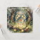 A beautiful fairy tale themed blank notecard. The lovely illustration has a fairy girl swinging on a magical swing inside of a mason jar in an enchanted garden in the forest. Fairy lights adorn the trees and swing.