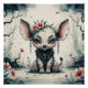 A gentle hybrid sits in a misty forest clearing, adorned with a flower, feathered necklace, and delicate charms. Surrounded by blooming flowers, trees, and soaring bats, this dreamy scene blends fantasy and serenity with a touch of gothic charm. Perfect for prints and gifts that evoke quiet magic and woodland wonder. AI