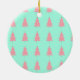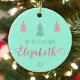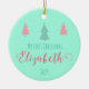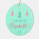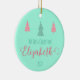 Crafting Memories in Mint Green! Celebrate your little one's inaugural holiday with our 'Enchanted First Christmas' ornament. The mint green canvas provides the perfect backdrop for the enchanting message 'My First Christmas,' adorned with the name of your baby, like the delightful Elizabeth. Two rosy trees and one green tree dance above the text, creating a whimsical scene. Flip the ornament to reveal a plethora of pink trees, capturing the joy of the season. This isn't just an ornament; it's a treasured memory, an elegant mint-green canvas awaiting the details of your unique holiday story. Welcome 2024 with this unique, stylish, and retro addition to your festive decor. Order now for an artistic and trendy keepsake! 🌲✨