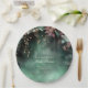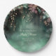 A whimsical watercolor illustration of lush foliage in emerald green and mauve and purple, sparkling with fairy lights and magic dust, with a canopy at the top, decorates this spring summer fall winter neutral baby shower party plate with an enchanted forest theme. An elegant, modern, enchanted forest theme for a fairytale baby shower. Perfect for moms and parents who love the fairytale forest setting, the fairy forest or fairy garden theme and emerald green, mauve and gold and who want a gender neutral celebration.