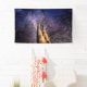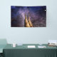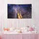 This design features a beautiful image of two tall trees rising up into the sky, surrounded by other trees in a forest. The scene is set at night-time when everything looks particularly magical and enchanting. There is a flock of birds in flight overhead. The sky is made up of a beautiful mixture of purple and blue; it is dotted with bright white stars.