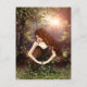 A serene moment in nature, with sunlight softly illuminating a woman in a flowing white dress, surrounded by lush greenery.