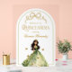 Welcome your guests in magical style with this personalized clear acrylic welcome sign. The sign features a beautiful girl in a forest-inspired gown with butterflies, a whimsical bow, on an elegant arch background, creating an enchanting first impression. With the ability to customize it with the birthday girl's name, this sign is a perfect centerpiece for your party entrance. © Kimbellished, LLC