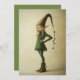 A charming young elf with delicate features and a playful expression, dressed in earthy green attire with a pointed hat adorned with hanging bells. She stands confidently with her hand on her hip, her long blonde hair flowing gracefully. Her attire, from the worn leather boots to the frayed hem of her dress, blends perfectly with her magical woodland surroundings, capturing the spirit of an enchanted forest.