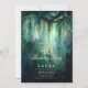 A whimsical watercolor illustration of lush foliage in emerald green, sparkling with fairy lights and magic dust, decorates this 40th birthday invitation with an enchanted forest theme. An elegant, modern invitation for a fairytale celebration. Perfect for women who love the fairytale forest setting, the fairy forest or fairy garden theme and emerald green.
