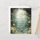 Ethereal forest path of flowers and trees are featured in this magical enchanted green wedding reception menu style, with glowing lights. An ethereal theme for your special day.