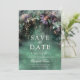 A whimsical watercolor illustration of lush foliage in emerald green with hues of lavender and lilac, sparkling with fairy lights and magic dust, decorates this spring summer fall quinceanera save the date invitation with an enchanted forest theme. An elegant, modern save the date for a fairytale celebration. Perfect for girls who love the fairytale forest setting, the fairy forest or fairy garden theme and emerald green with a touch of lavender purple.