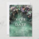 A whimsical watercolor illustration of lush foliage in emerald green with hues of lavender and lilac, sparkling with fairy lights and magic dust, decorates this spring summer fall wedding save the date invitation with an enchanted forest theme. An elegant, modern save the date for a fairytale wedding. Perfect for brides who love the fairytale forest setting, the fairy forest or fairy garden theme and emerald green with a touch of lavender purple.