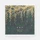 A whimsical watercolor illustration of lush foliage and vines layered digitally with gold (not real foil) over an emerald green background, sparkling with fairy lights and magic dust, decorates this winter spring summer fall wedding napkin with an enchanted forest theme. An elegant, modern invitation for a fairytale wedding. Perfect for brides who love the fairytale forest setting, the fairy forest or fairy garden theme and emerald green.